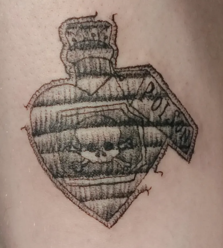 frasco “Poison” en corazón, sombreado suave