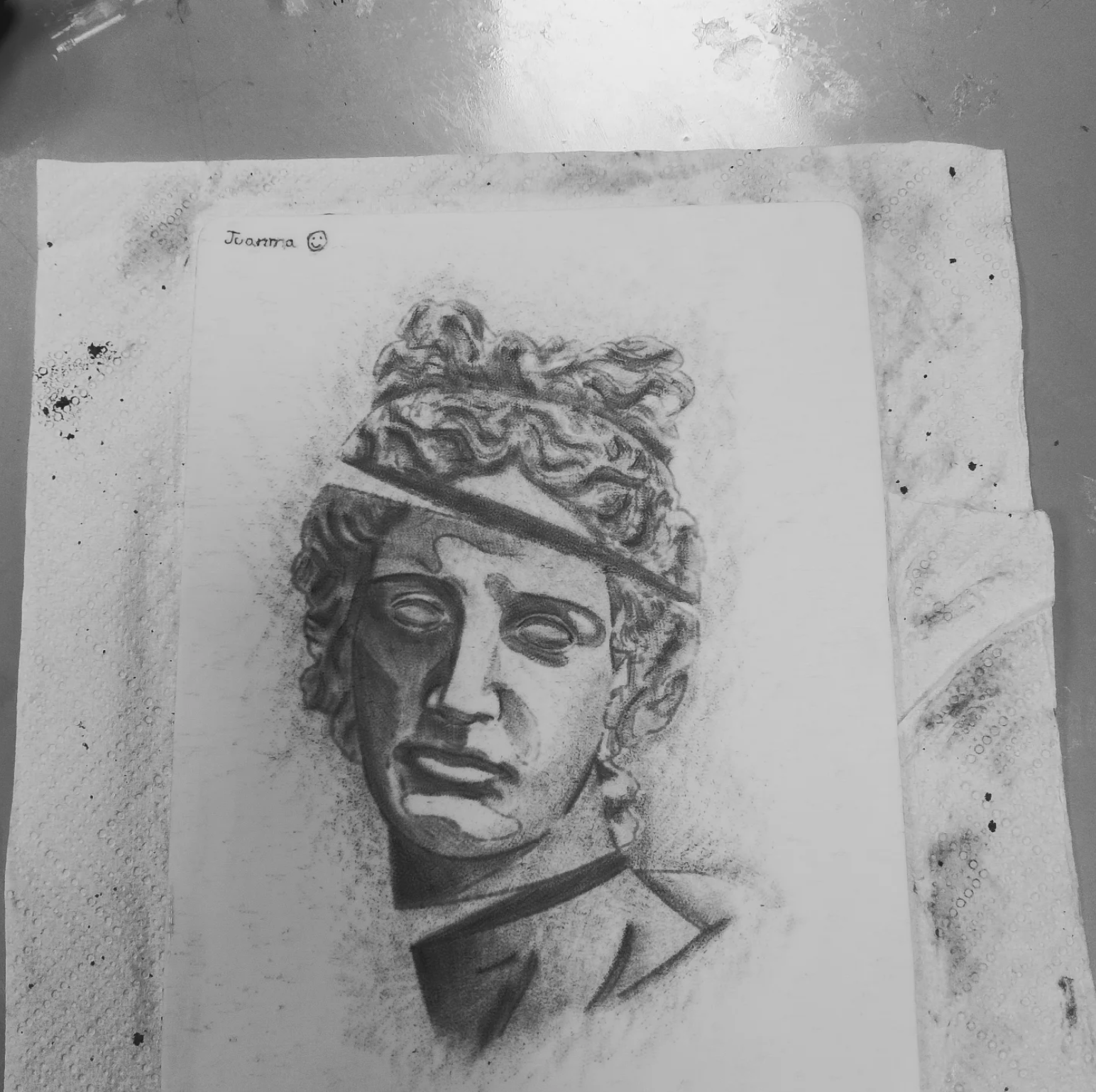 busto clásico, sombreado a lápiz y punteado
